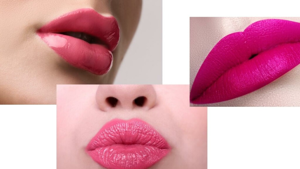 ④もうワントーン濃い(チェリーピンクなど)カラーを内側に重ねて、じゅわっと血色感な唇に